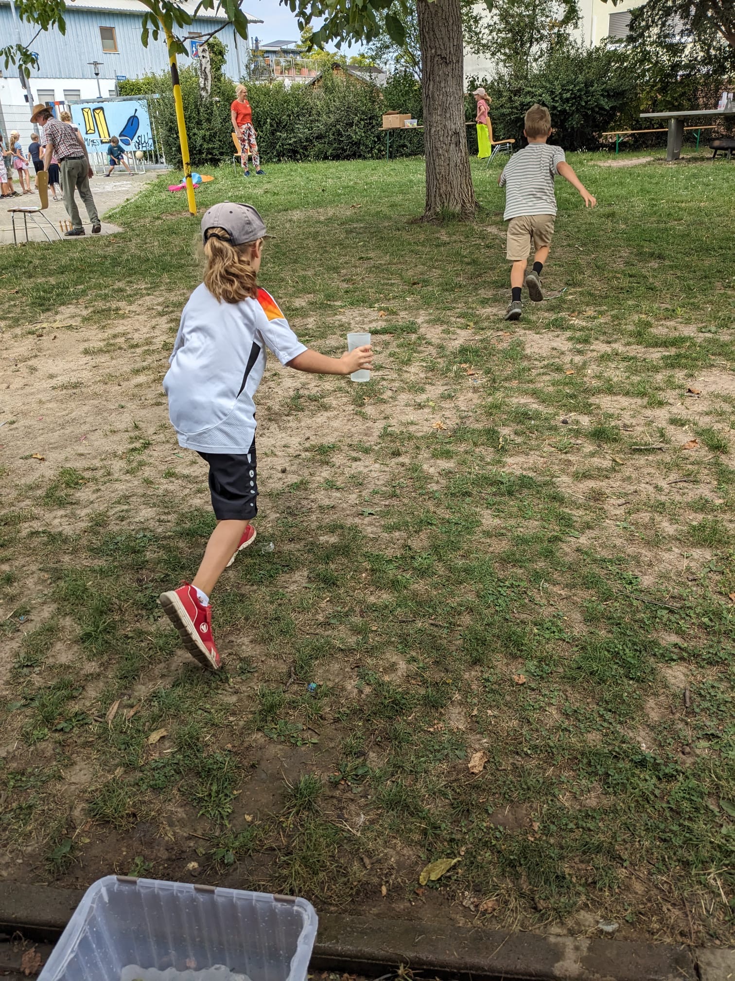 Die Kinder zwischen fünf und neun Jahren konnten Stationen, die besonders viel Spaß gemacht haben, auch mehrmals durchlaufen. Beim Sackhüpfen und Eierlauf drehten beispielsweise einige Kinder mehrere Runden. Bei den warmen Temperaturen waren auch die zwei Wasserstationen beliebt: da es beim Wassertransport schnell zur Sache ging, spritzte es auch ordentlich und die Kinder waren erfrischt.